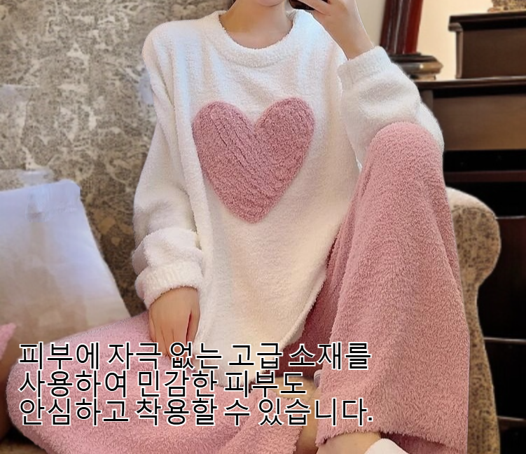 ● 부드럽고 포근한 기모 원단으로 한겨울에도 따뜻하게 착용할 수 있는 여성 스윗 코랄 잠옷 세트입니다. ● 사랑스러운 코랄 컬러와 세련된 디자인으로 집에서도 스타일과 편안함을 동시에 연출할 수 있습니다. ● 여유로운 핏과 신축성 좋은 소재로 오랜 시간 착용해도 편안함을 유지해주는 실용적인 홈웨어입니다. ● 피부에 자극 없는 고급 소재를 사용하여 민감한 피부도 안심하고 착용할 수 있습니다. ● 실내 활동은 물론, 소중한 분께 선물하기에도 손색없는 감각적인 패키지로 준비되어 있습니다.